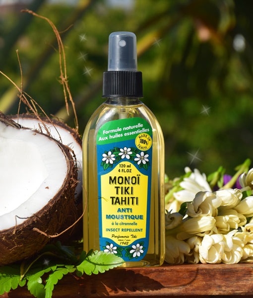 Το αντικουνουπικό Mοnoi tiki με άρωμα λεμονόχορτο περιέχει ένα φυσικό απωθητικό από ένα αφρικανικό φυτό, γνωστό για τις εντομοαπωθητικές του ιδιότητες.